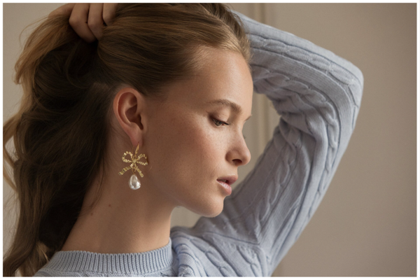 Avec l'iconique ruban style Louis XVI et une perle baroque.