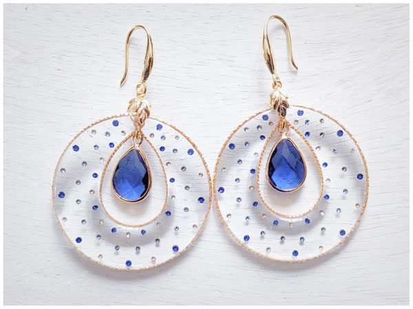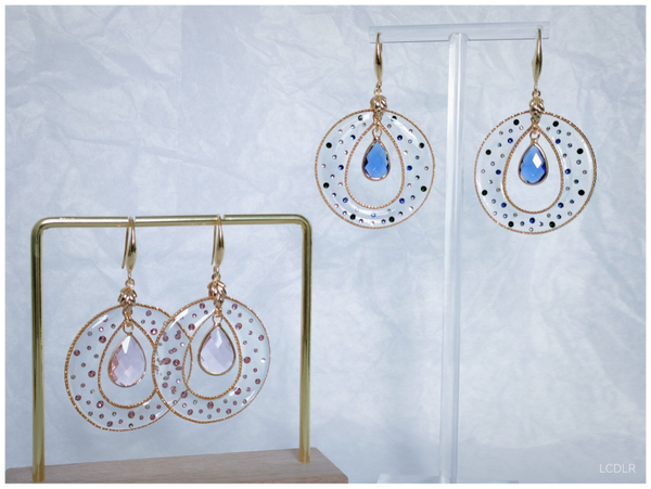 Montées sur pendant pour oreille percées en palqué or (possibilité de les changer avec une créole pour oreilles non percées, à bien préciser lors de votre commande).