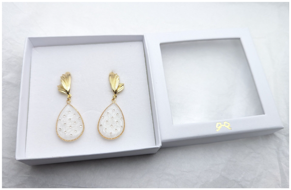 🔹Boucles d'oreilles "Monarque" - modèle Blanc nacré & or