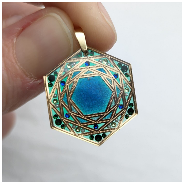 Médaillon hexagonal "Éclosion de rose".