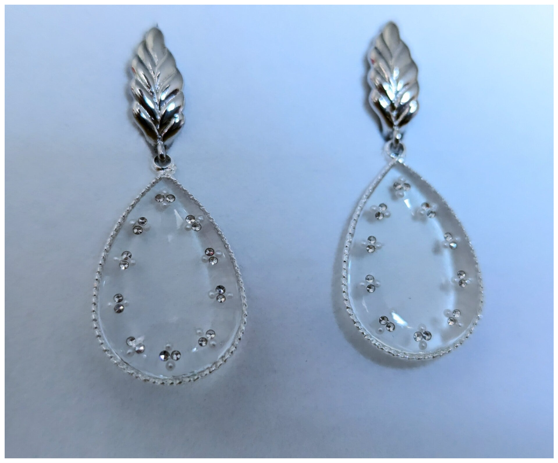 Les supports sont en acier inoxydable ou plaqué-or (sauf mention contraire), avec un remplissage en résine et de véritables fleurs.