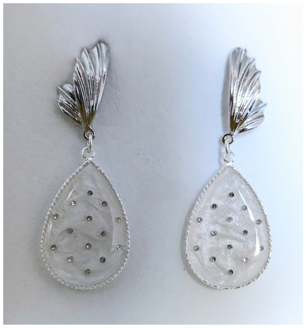 🔹Boucles d'oreilles "Monarque" - modèle blanc nacré platine