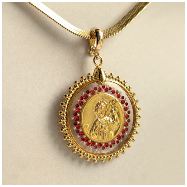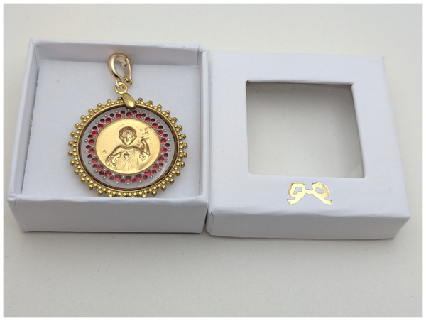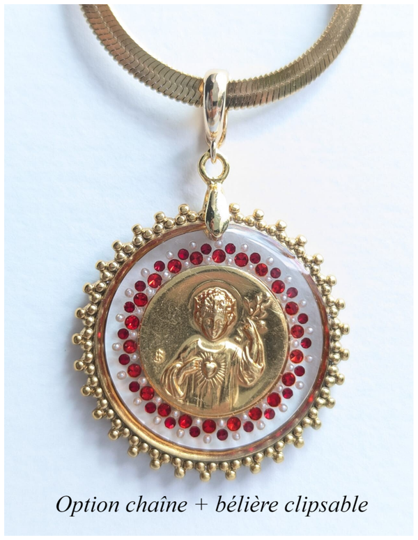 🔹Médaille Jésus Roi d'Amour MultiStrass Rouge Rubis cadre trilobé