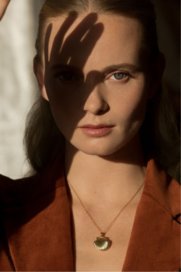 Délicat pendentif en plaqué-or en forme de coquillage, doré ou argent.