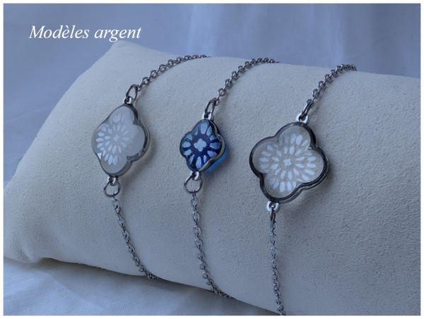 🔹Bracelet "MaDame & M" - Rosace blanche, fond transparent (argent)