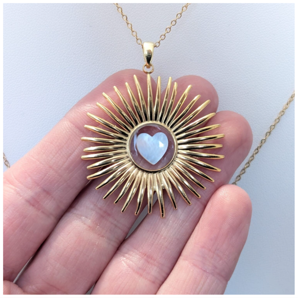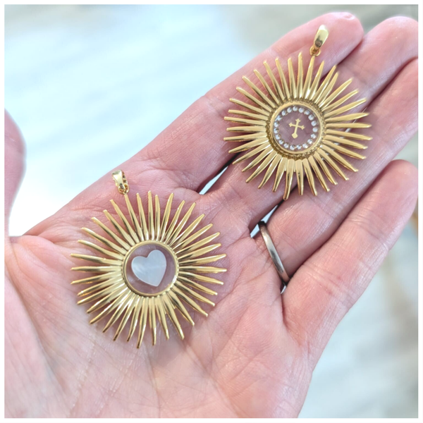 Un soleil d'or, un cœur nacré, une chaîne d'éternité.