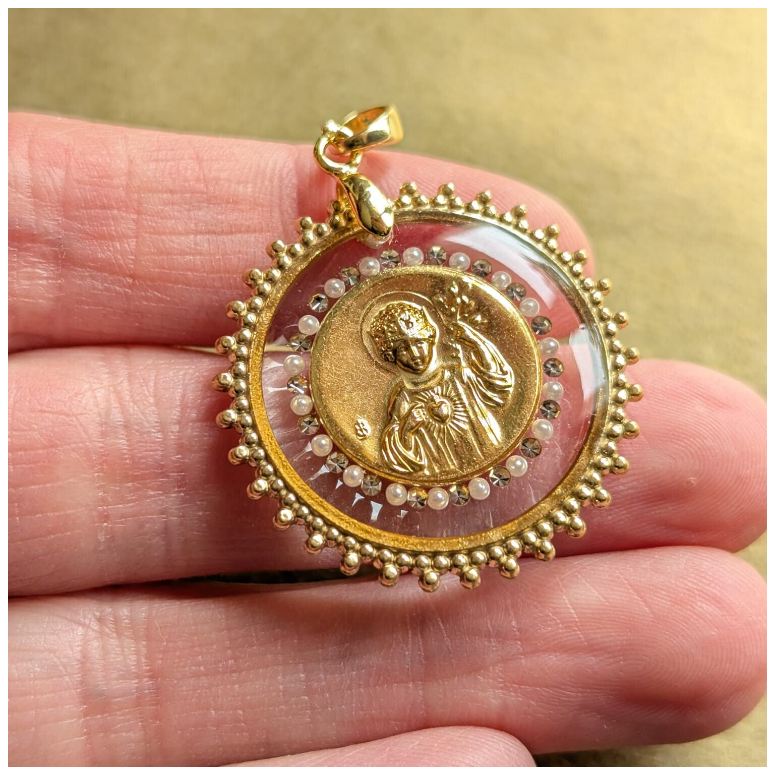 🔹Médaille Jésus Roi d'Amour Perles & Cristal - cadre trilobé