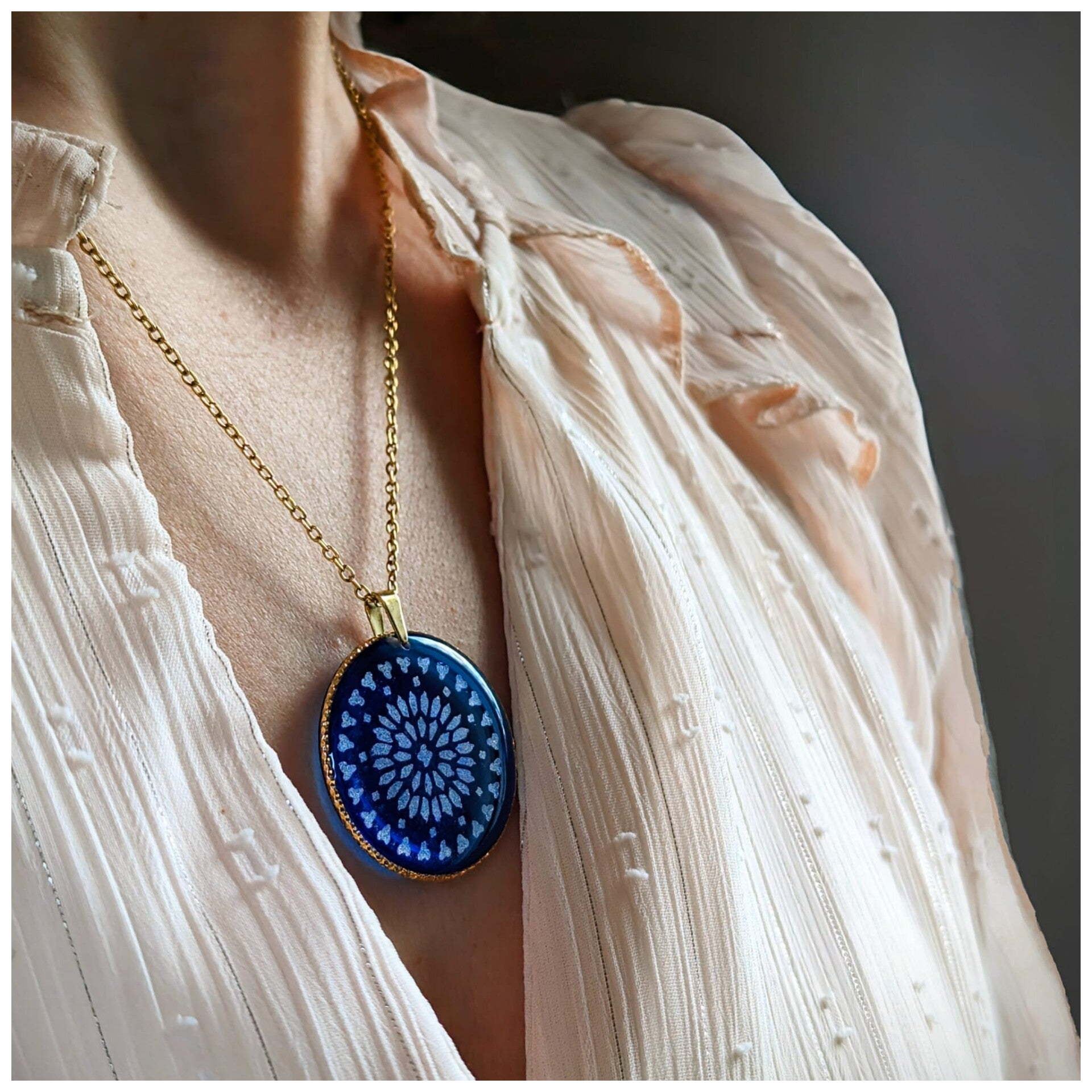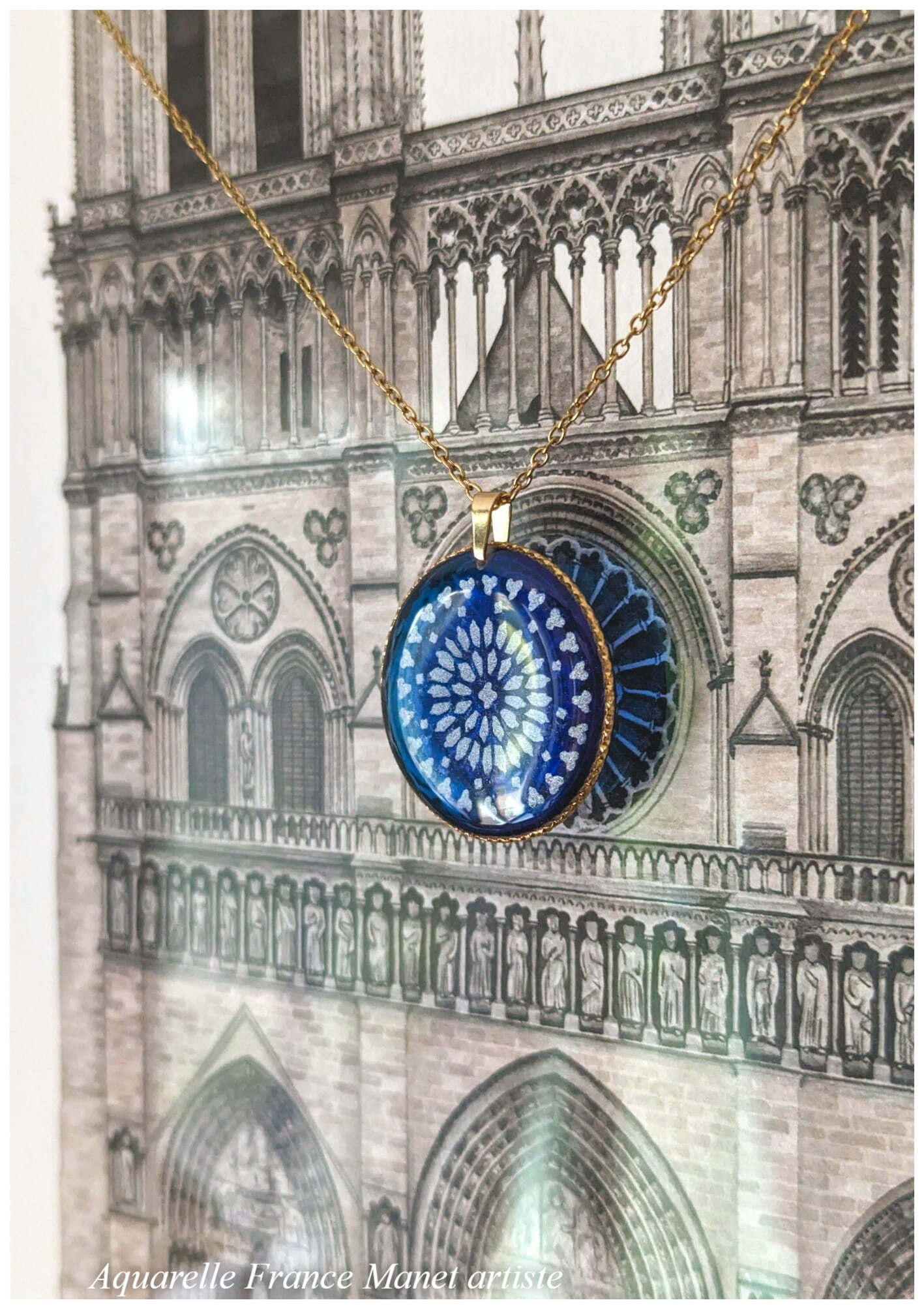 Ce médaillon rend hommage à Notre-Dame de Paris, joyau de l’histoire française, blessée mais toujours debout. Une création lumineuse et féminine, inspirée par la force du renouveau et la beauté des grands monuments. Chaque détail évoque la pierre, le feu, puis la renaissance.