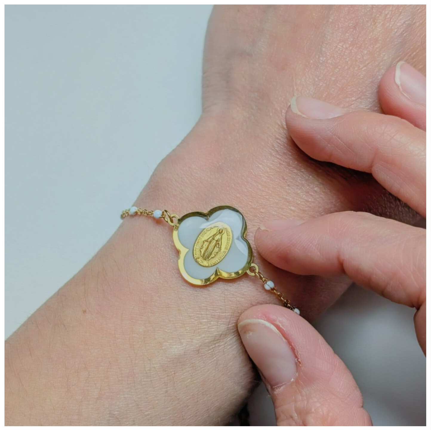 Ce bracelet a été créé pour celle qui traverse des tempêtes, celle qui cherche la paix du cœur, celle qui aime Marie, notre Maman du Ciel.