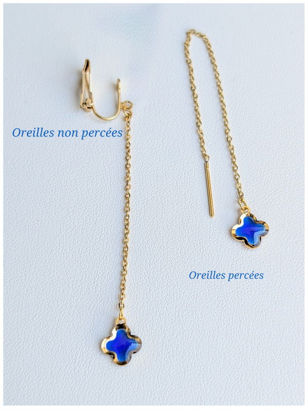 Leur montage en acier inoxydable doré, fin et discret, est disponible pour oreilles percées ou non percées, au choix.
