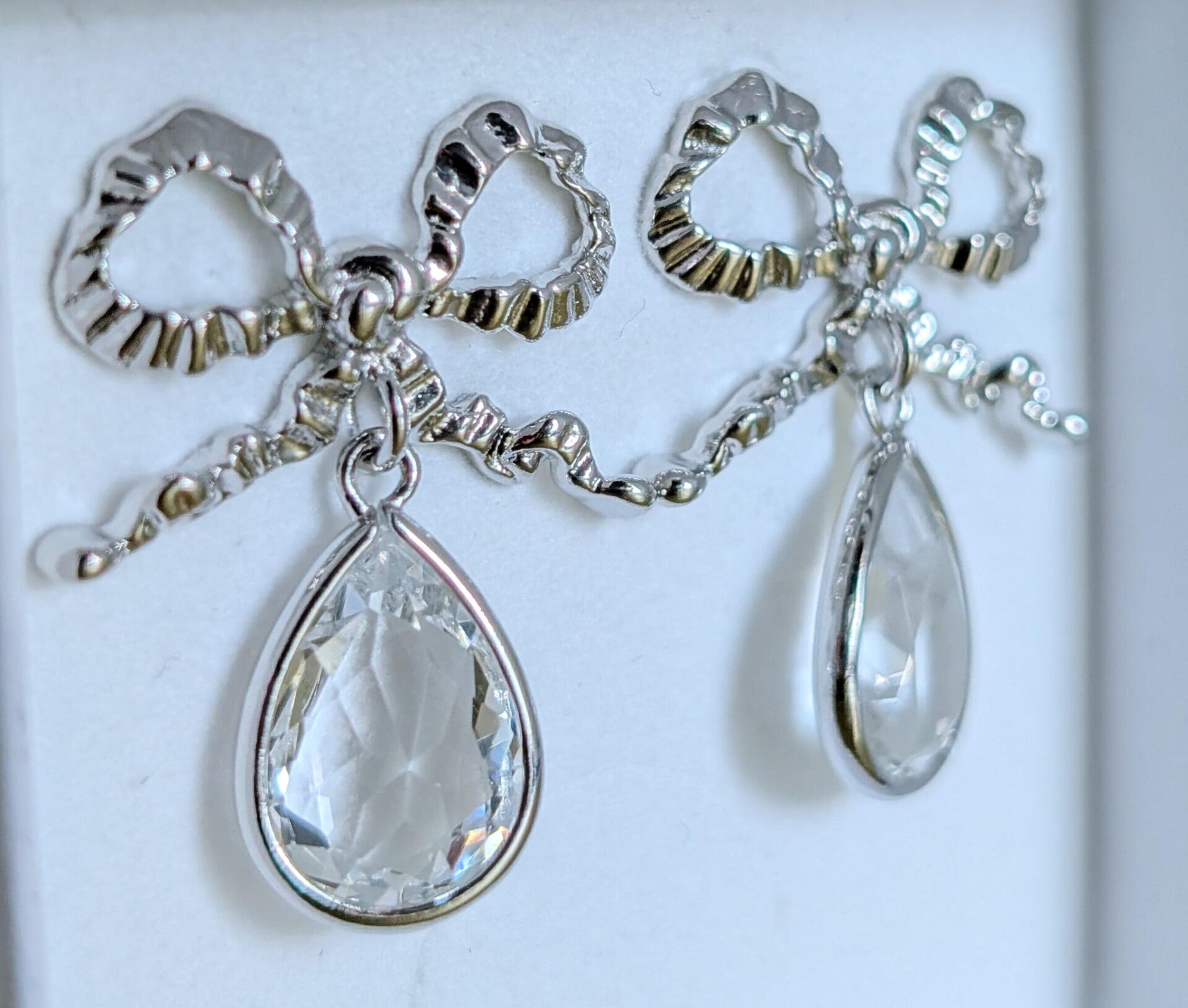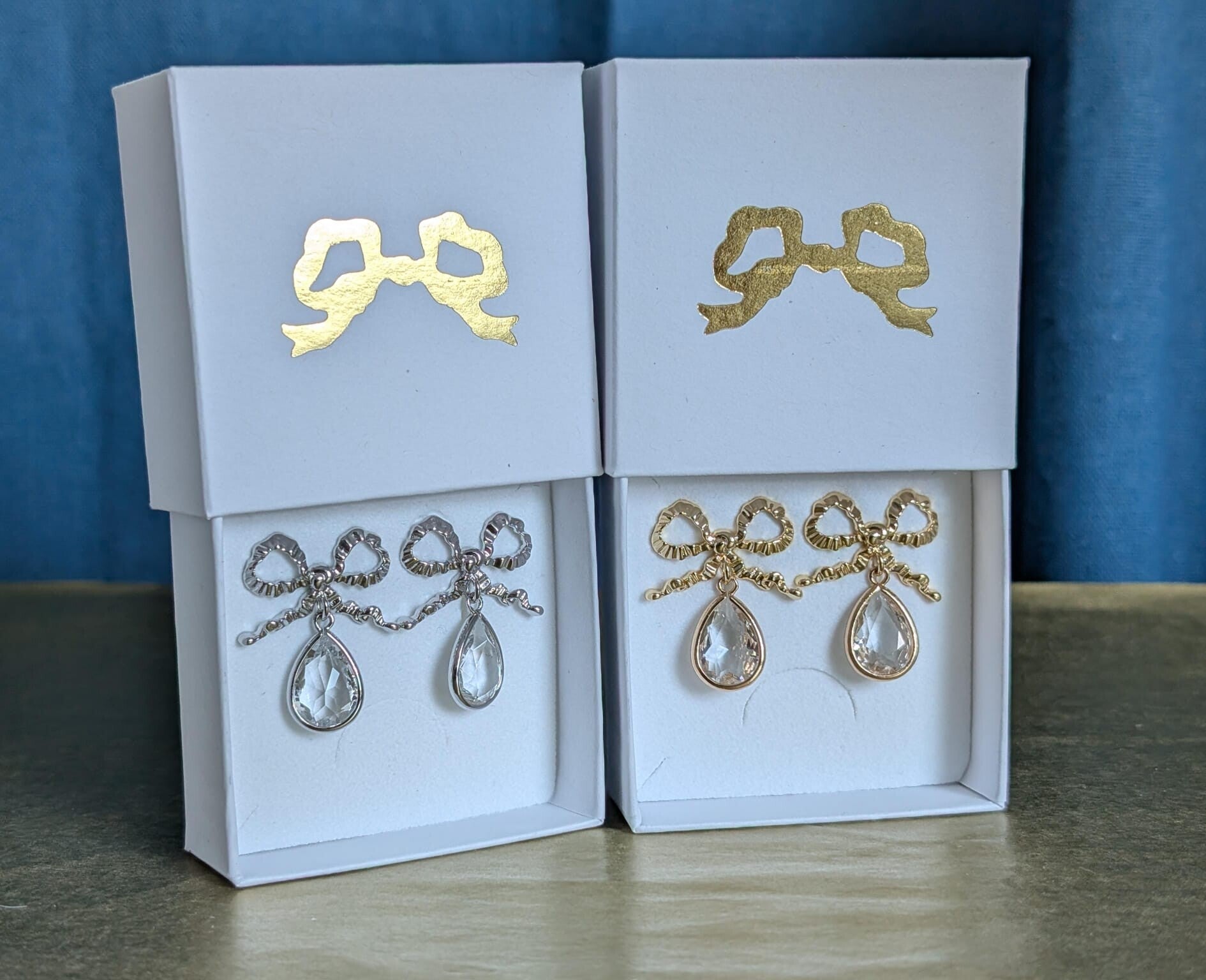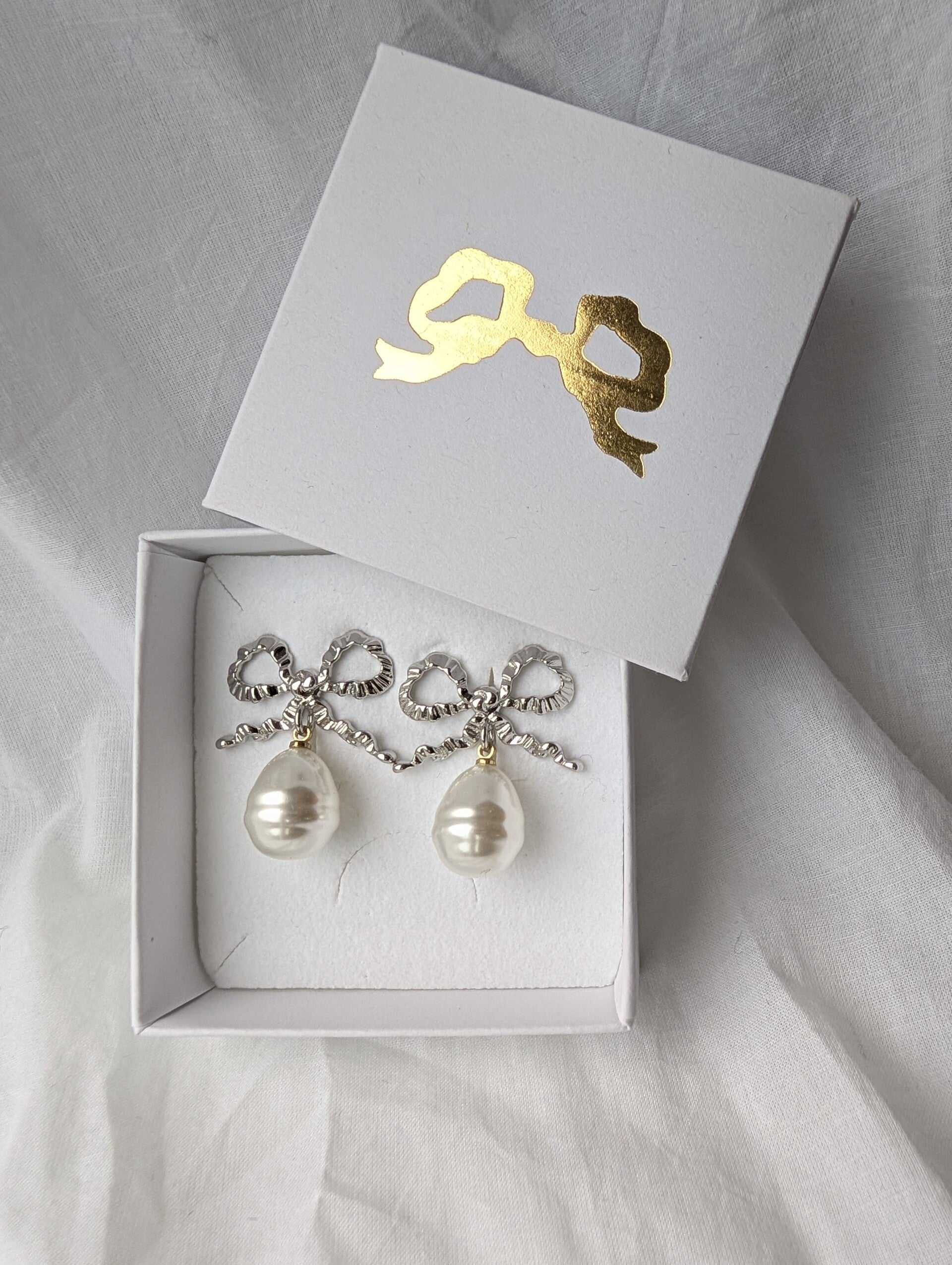 Le nœud, en argent 925 plaqué or ou platine, apporte une touche élégante sans en faire trop.